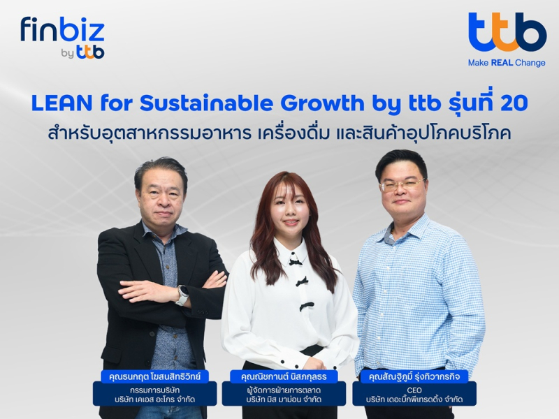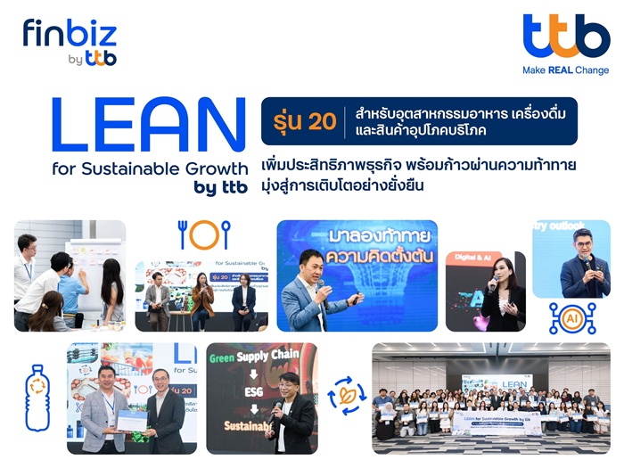 หลักสูตร LEAN for Sustainable Growth by ttb รุ่นที่ 20 เป็นหลักสูตรที่ทางทีทีบีมุ่งมั่นและสนับสนุนให้ผู้ประกอบการในซัพพลายเชนของอุตสาหกรรมอาหาร เครื่องดื่ม และสินค้าอุปโภคบริโภค ที่เข้าร่วมอบรมกว่า 80 บริษัท ได้รับองค์ความรู้ที่ครอบคลุมในหัวข้อการลดต้นทุน เพิ่มประสิทธิภาพ รวมถึงเพิ่มเติมเรื่องเทคโนโลยี AI เพื่อให้สอดรับกับบริบทของโลกธุรกิจยุคใหม่ และสร้างความได้เปรียบทางการแข่งขัน ไม่ว่าจะเป็นการวิเคราะห์ข้อมูลลูกค้า การออกแบบสื่อการตลาด หรือการปรับปรุงกระบวนการทำงานให้แม่นยำและคล่องตัวมากยิ่งขึ้น อีกทั้งยังเสริมต่อองค์ความรู้เรื่องเทรนด์อุตสาหกรรม และแนวทาง ESG ซึ่งมีบทบาทสำคัญในการขับเคลื่อนธุรกิจสู่ความยั่งยืน โดยภายใต้การอบรมตลอดระยะเวลา 6 วันเต็ม ได้รับเกียรติจากทีมอาจารย์ผู้เชี่ยวชาญ และผู้บริหารระดับสูงจากองค์กรชั้นนำในอุตสาหกรรม อาทิ บมจ. ซีพี แอ็กซ์ตร้า บจก. ซี.เจ. มอร์ บจก. ไทยอินโนฟู้ด บมจ. ปตท. น้ำมันและการค้าปลีก บจก. แปลนครีเอชั่นส์ บจก. ฟู้ดแพชชั่น บมจ. หาดทิพย์ บจก. โอชาฟูดแพ็ค และสถาบันวิจัยเพื่อการพัฒนาประเทศไทย (ทีดีอาร์ไอ) มาร่วมถ่ายทอดองค์ความรู้และประสบการณ์ พร้อมให้คำปรึกษาอย่างใกล้ชิด เพื่อให้ผู้ประกอบการสามารถนำไปปรับใช้ได้จริงในธุรกิจ