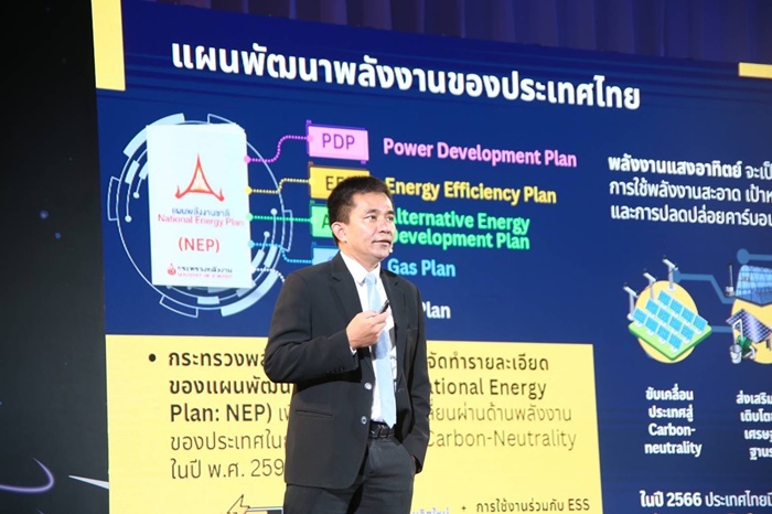 “นอกจากนี้ กระทรวงพลังงานยังจัดทำแผนพลังงานชาติฉบับใหม่ ที่มีเป้าหมายการมุ่งสู่ Carbon Neutrality 2050 หรือความเป็นกลางทางคาร์บอน ซึ่งหมายถึงการลดดูดซับ หรือชดเชยคาร์บอนไดออกไซด์ (CO2) ในปริมาณที่เท่ากับการปล่อย CO2 ตามกรอบแผนพัฒนาพลังงานชาติ (National Energy Plan) ซึ่งกำหนดเป้าหมายการผลิตไฟฟ้าจากพลังงานทดแทนไว้ที่สัดส่วนไม่น้อยกว่าร้อยละ 50 โดยมุ่งเพิ่มการใช้พลังงานทดแทน ส่งเสริมการประหยัดพลังงานให้เข้มข้นมากขึ้น รวมทั้งมีนโยบายส่งเสริมการใช้พลังงานแสงอาทิตย์มากขึ้น ภายใต้ขอบเขตของการร่วมมือในการพัฒนาส่งเสริมการใช้พลังงานทางเลือกระหว่างภาครัฐและเอกชนที่สามารถร่วมกันเพื่อขับเคลื่อนสังคม พร้อมส่งเสริมการใช้พลังงานทางเลือกในบริบทต่างๆ เช่น การส่งเสริมการลงทุนในธุรกิจสีเขียว การใช้พลังงานสะอาดให้มากขึ้น รวมถึงการแลกเปลี่ยนความรู้ ความเชี่ยวชาญและมุมมองความต้องการในเชิงธุรกิจ”