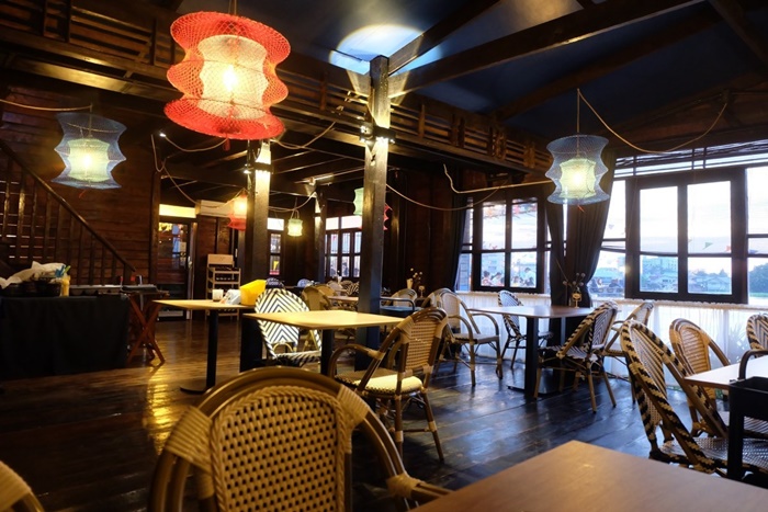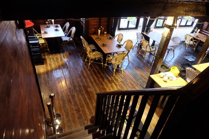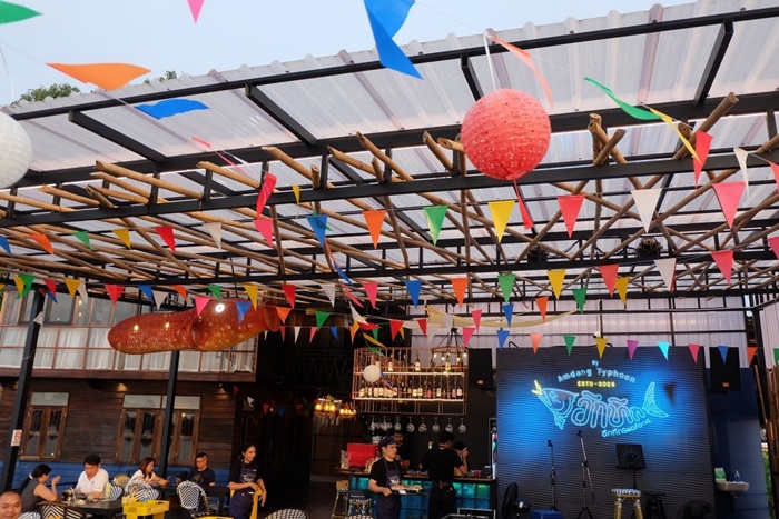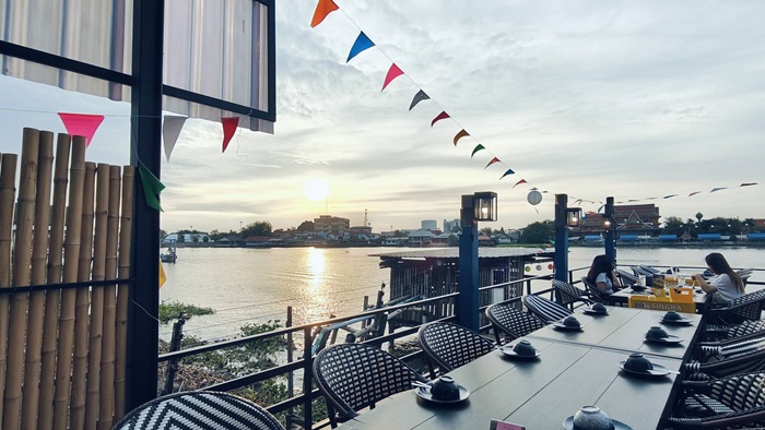 ตัวร้านเป็นบ้านเก่าริมน้ำนำมาดัดแปลงเป็นร้านอาหาร ชวนให้จินตนาการเหมือนมาทานข้าวบ้านชาวเลริมแม่น้ำ ตกแต่งให้มีกลิ่นอายของวิถีชาวเล ด้วยอุปกรณ์ประมง ไม่ว่าจะเป็นแห อวน แต่งแต้มสีสันด้วยโลโก้รูปปลาริมผนัง ที่เป็นจุดเช็คอินฮอตฮิตของลูกค้าทุกคน ภายในตัวบ้านไม้สองชั้นจัดเป็นโซนอินดอร์ ตกแต่งเรียบง่าย นั่งสบาย เหมาะสำหรับช่วงเวลากลางวัน ส่วนโซนเอ้าท์ดอร์ริมน้ำ สำหรับสังสรรค์ช่วงแดดร่มลมตก บรรยากาศริมแม่น้ำเจ้าพระยาสวยงาม ช่วงกลางคืนมีดนตรีสดแสดง และเคาน์เตอร์บาร์ที่บริการเครื่องดื่มให้ชื่นมืน อึกทึกไปทั่วคุ้งน้ำ สามารถรองรับลูกค้าได้ 150 ที่นั่ง
