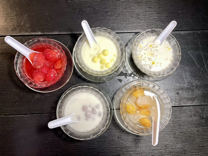 ทานคาวแล้วต้องทานหวาน เมนูแนะนำ คือ บัวลอยทุเรียนมะพร้าวอ่อน หอมกลิ่นทุเรียนฟุ้งขึ้นจมูก, บัวลอยเผือกมะพร้าวอ่อน เนื้อบัวลอยนุ่มมาก หวานกลมกลม, เมล่อนญี่ปุ่นนมสด, สตรอเบอร์รี่ลอยแก้ว, สาคูทรงเครื่อง, ลูกตาลสละลอยแก้ว และสละลอยแก้ว