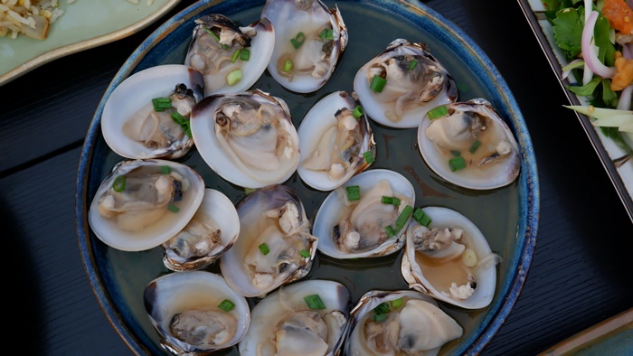 หอยตลับต้มเหล้า เมนูนี้น่าจะถูกใจคอเหล้า หอยตลับตัวใหญ่ หอมหวาน รสละมุน เนื้อหนึบ เคี้ยวเพลิน ทานคู่กับน้ำจิ้มซีฟู้ดรสแซ่บ เป็นเมนูง่ายๆ แต่อร่อยด้วยรสชาติความสดของวัตถุดิบ