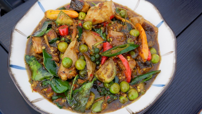 น้ำพริกอึกทึกครึกโครม (น้ำพริกมะม่วง ใส่ปลากดย่าง) น้ำพริกที่เป็นซิกเนเจอร์ รสชาติบ้านๆ หากินได้ยากนัก ความหอมเฉพาะตัวของปลากดย่าง ตำคลุกเคล้ากับน้ำพริกมะม่วง คลุกข้าว จิ้มแกล้มกับผักสดสารพัด อร่อย ลืมอิ่ม